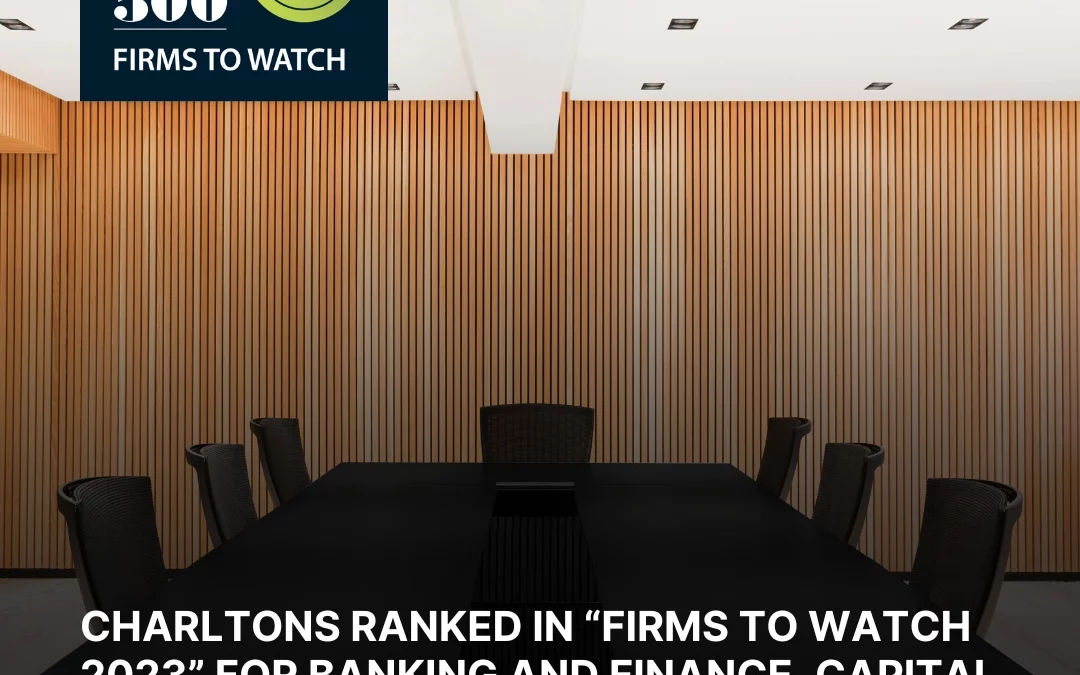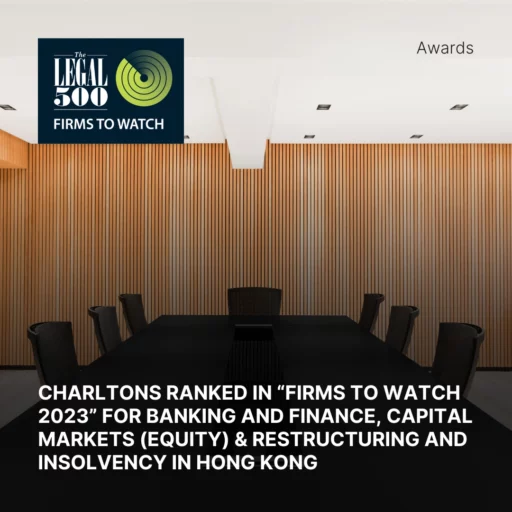 We are pleased to announce that Charltons is ranked as one of the “Firms To Watch” by Legal 500 Asia Pacific in Banking and Finance, Capital Markets (Equity) and Restructuring and Insolvency in its 2023 rankings.