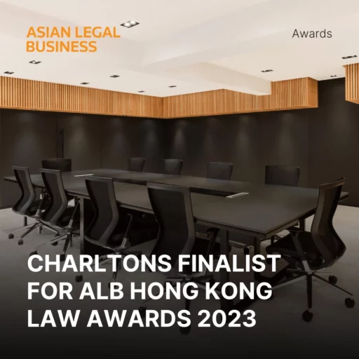 Charltons is a finalist in the Asian Legal Business (ALB) Hong Kong Law Awards 2023 in the categories of “Transactional Boutique Law Firm of the Year” and “Hong Kong Law Firm of the Year”. The winners will be announced at the black-tie gala dinner and awards ceremony on 15 September 2023 at the JW Marriott Hotel Hong Kong.