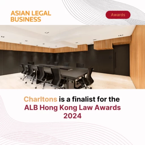 Charltons has been named a finalist in the “Transactional Boutique Law Firm of the Year” category at the esteemed ALB Hong Kong Law Awards 2024. The awards winners will be unveiled during the black-tie gala dinner and awards ceremony on September 13, 2024, at the JW Marriott Hotel Hong Kong.