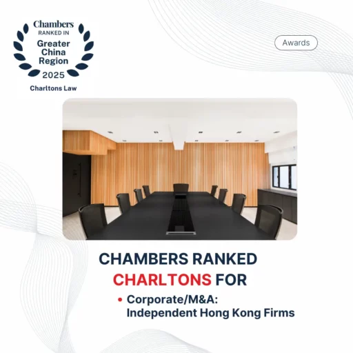 We are pleased to announce that Charltons has been honoured in the prestigious Chambers Greater China Region Guide 2025! This ranking reflects Charltons’ dedication to providing cutting-edge legal services in the areas of Corporate and M&A law. With over 25 years experience representing major multinational clients in complex cross-border transactions, we are committed to continue providing cutting-edge legal advice. This recognition is a testament to our team’s hard work and commitment to excellence. Thank you to our clients and colleagues for all the ongoing support!