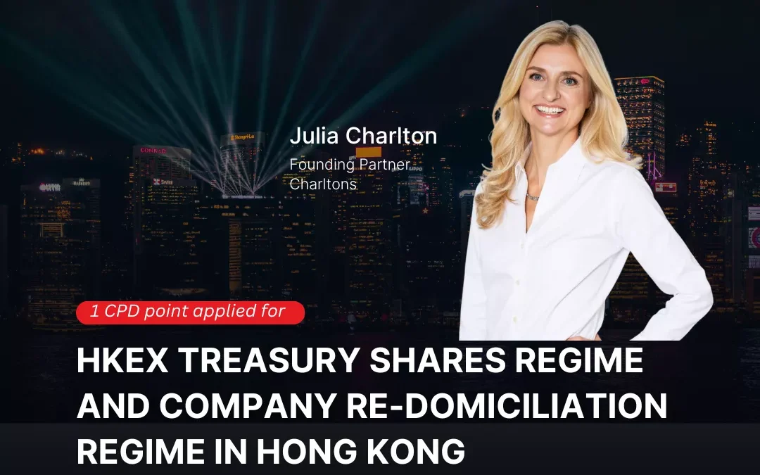 Register for a webinar from 5:00–6:00 pm HKT on 24 October 2025, covering the introduction of the Treasury Shares Regime and the Company Re-domiciliation Regime in Hong Kong.