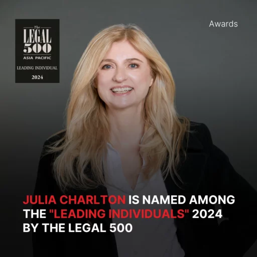 Julia Charlton, a managing partner of Charltons, is named among the “Leading Individuals” 2024 by the Legal 500 in Commercial, Corporate And M&A: Independent Hong Kong Law Firms.