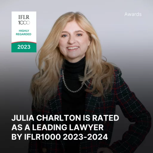 We are pleased to share that Julia Charlton, managing partner of Charltons, was rated as a Leading Lawyer – ”Highly regarded” with IFLR1000 2023-2024 in the categories of “Capital markets: Equity” and “M&A”.