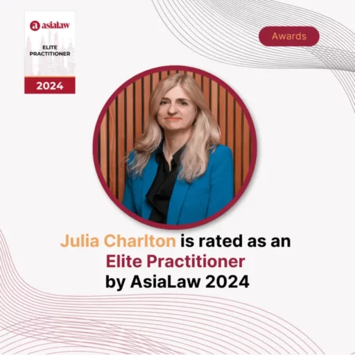 We are thrilled to announce that Julia Charlton, a managing partner of Charltons, has been recognized as an “Elite Practitioner” by AsiaLaw 2024 in the fields of “Capital Markets” and “Corporate and M&A.”