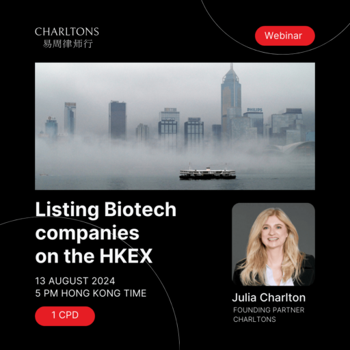 On 13 August 2024, Julia Charlton presented a webinar on Listing Biotech companies on the Hong Kong Stock Exchange