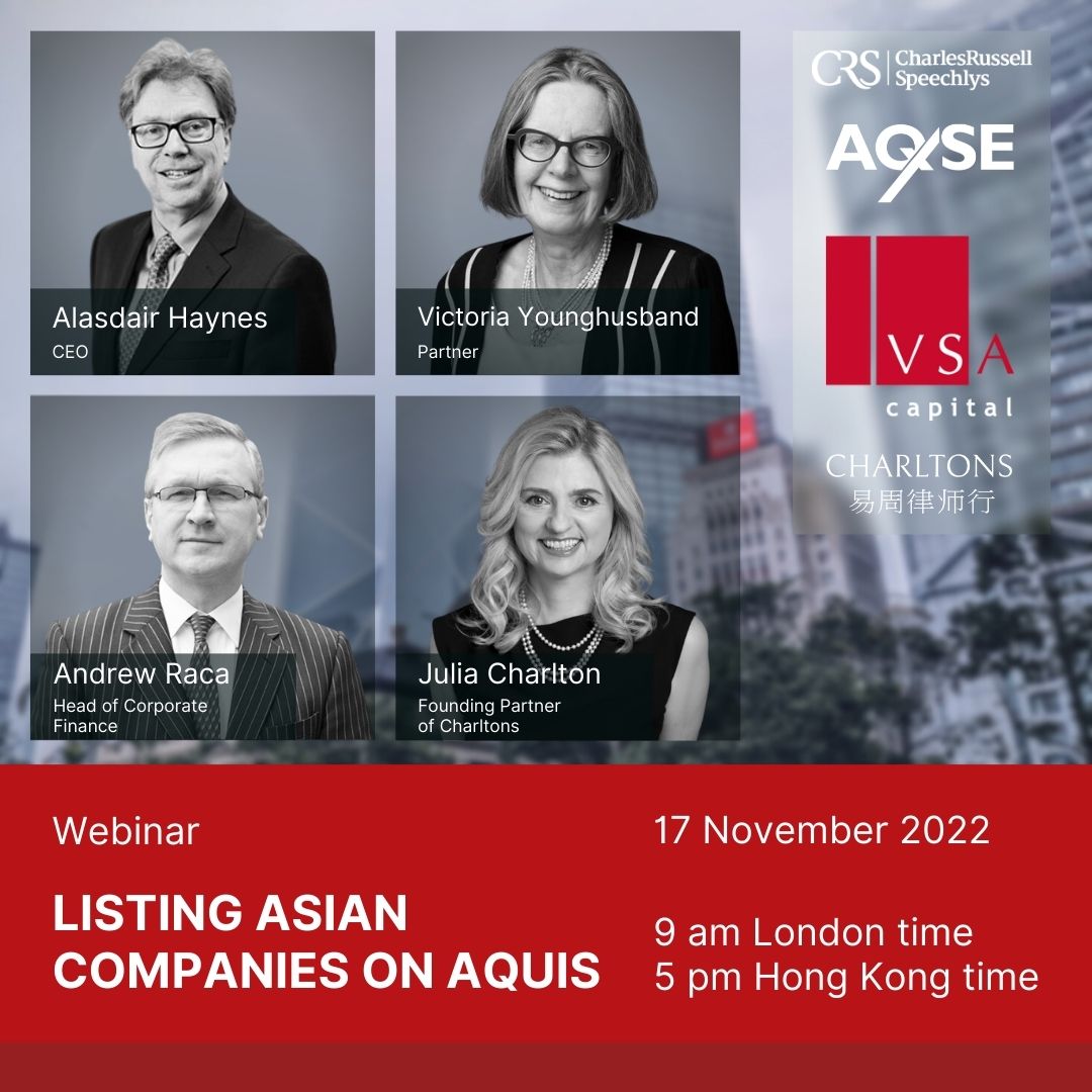 Julia Charlton moderated a webinar on Listing Asian companies on Aquis. Now available on the Charltons YouTube-channel.